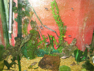 Finally, finally, finally it was time for a change. We took the shark to the fish store and traded him in for a bunch of little, lively tetras.